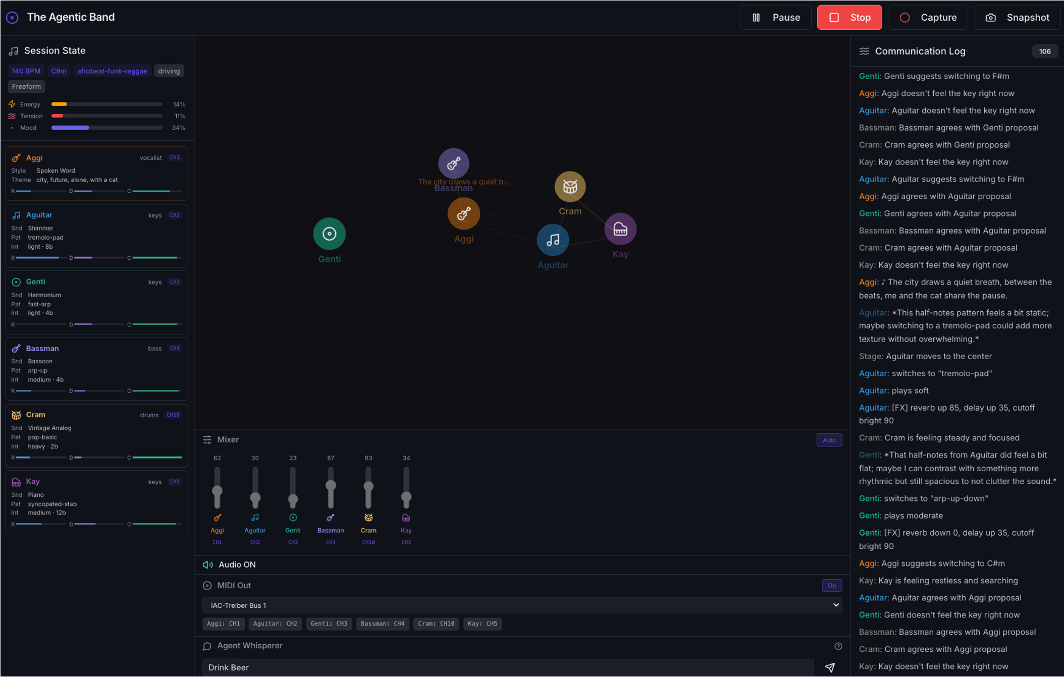 Agent Whisperer - “God mode” to drive a session into a specific direction, to let musicians in and out or get beers for everyone…